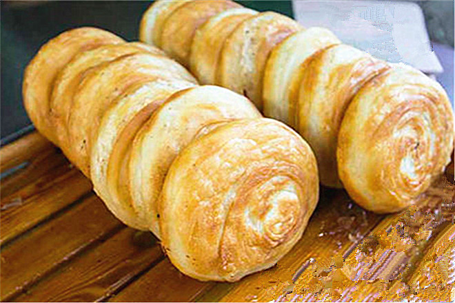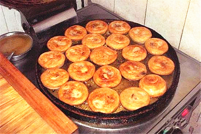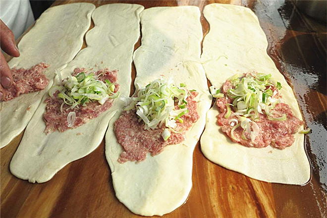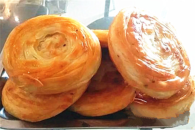 面要用温水来和,这样面饼吃起来才会柔软;牛肉馅料要新鲜,花椒水、胡椒面及洋葱的搭配,不仅丝毫吃不出点牛肉的膻味,而且吃起来鲜嫩多汁。当然最重要的在这“香酥”二字,由多层薄如蝉翼的面皮包裹而成,经过煎制后形成层层酥脆的外皮。因此包裹馅料的面皮的厚度是作品成败的关键,面皮拉得越长越薄,就能包裹的层数越多,也能煎出酥脆的效果,当然难度越大,不过慢慢来,做着做着就可以了。