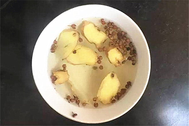 2.将花椒、姜片等大料放入碗中,加入开水泡上三十分钟再摊凉备用;